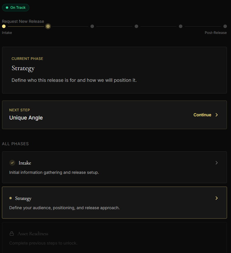 The 0102 Artist Operating System is a step-by-step execution framework that guides you through every phase of a professional music release.